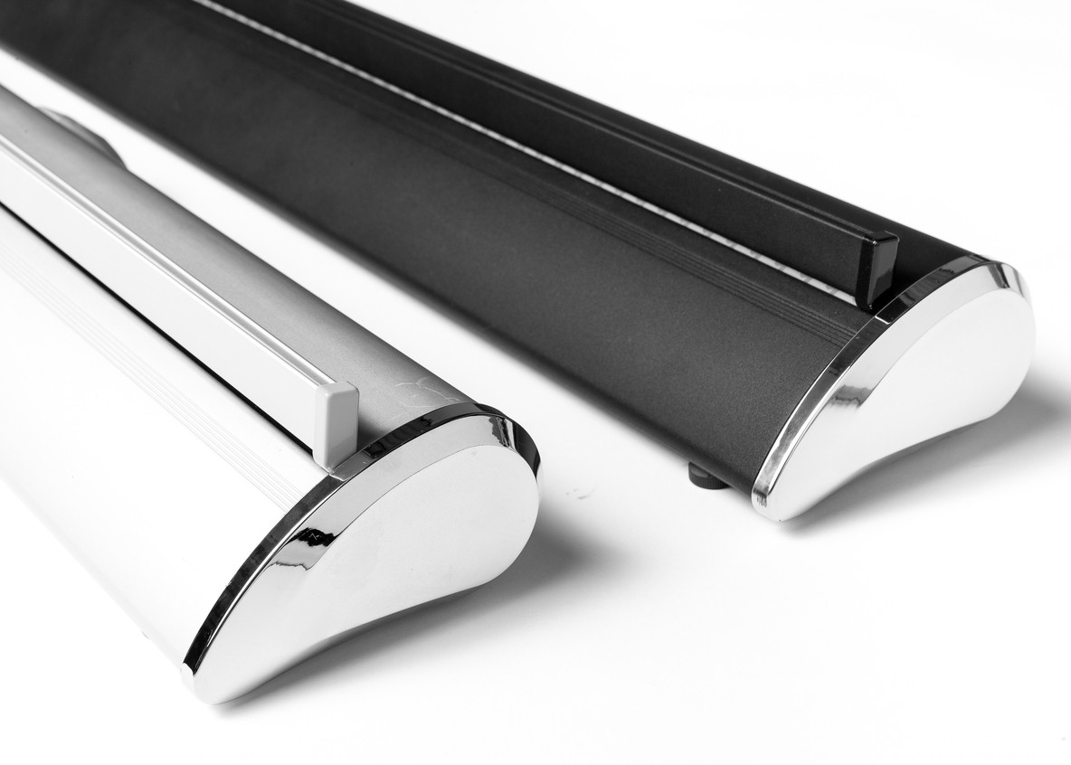 Unsere Roll Ups sind äußerst leicht und platzsparend im Transport. Insbesondere bei kurzfristig geplanten Präsentationen sind sie das ideale Werbemittel: Sie nehmen quasi keinen Platz im Fahrzeug weg, lassen sich mittels Tasche komfortabel tragen und der Aufbau erfolgt in Höchstgeschwindigkeit: Stange rausnehmen und zusammenstecken, in der Kassette montieren und die eingewickelte Druckfläche herausziehen – fertig. Je nach Modell steht die Kassette selbstständig oder kann dank der Aluminiumfüße sicher aufgestellt werden.