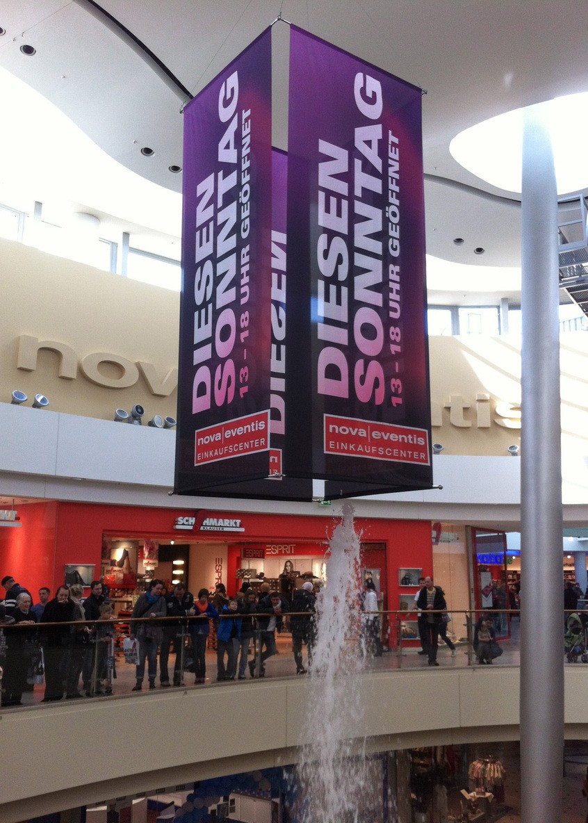 Messebanner sind eine auf Messe-Anwendungen spezialisierte Form des Megabanners und der Riese unter den Innen-Werbeformen: Auch im größten Publikumsverkehr erreichen Sie durch die beliebige Größe unserer Messebanner eine hohe Wirkung und ziehen die Blicke der Besucher zu Ihrem Stand.
